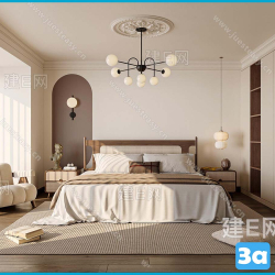Modern Style Bedroom 3D Scene