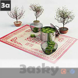 Traditional Vietnamese Rice Cake and Peach Blossom 3D Model