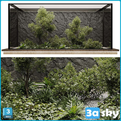 3D Model of Garden Set Bush and Tree Plant