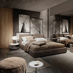 Industrial Style Bedroom Space 3D Scene