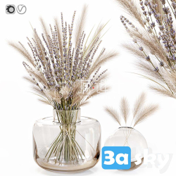 Dry flowers in glass vase with lavender
