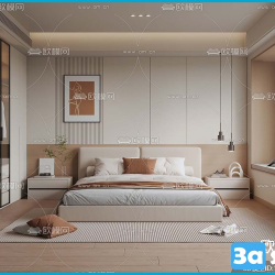 Modern Style Bedroom 3D Scene