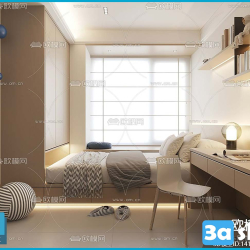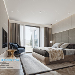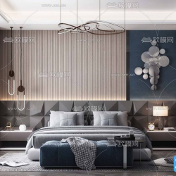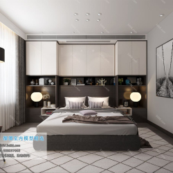 Modern Style Bedroom Space 3D Scene