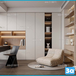 Modern Style Bedroom Space 3D Scene