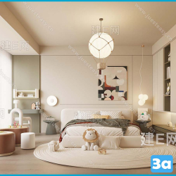 Modern Style Bedroom 3D Scene