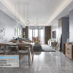 Modern Style Living Room 3D Scene