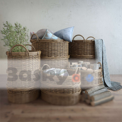 Bamboo Basket with Handles 3D Model