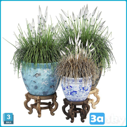 Pampas Flower in Hand Basket 3D Model