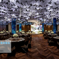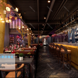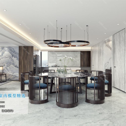Modern Style Restaurant Dining Room 3D Model