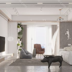 Modern Style Living Room 3D Scene