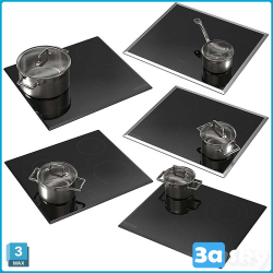 3D Model of Kitchen with Bosch Hobs and Cookware