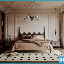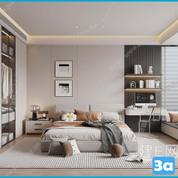 Modern Style Bedroom 3D Scene