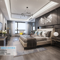 Modern Style Bedroom 3D Scene