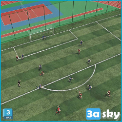 Football Field with Players 3D Model