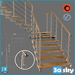 Contemporary Corner Staircase 3D Model