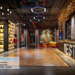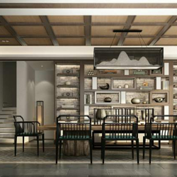 Chinese Style Restaurant Dining Room Vray Model 3D Scene