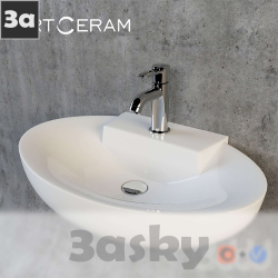 3D Model of Tabletop Washbasin in Bathroom and WC