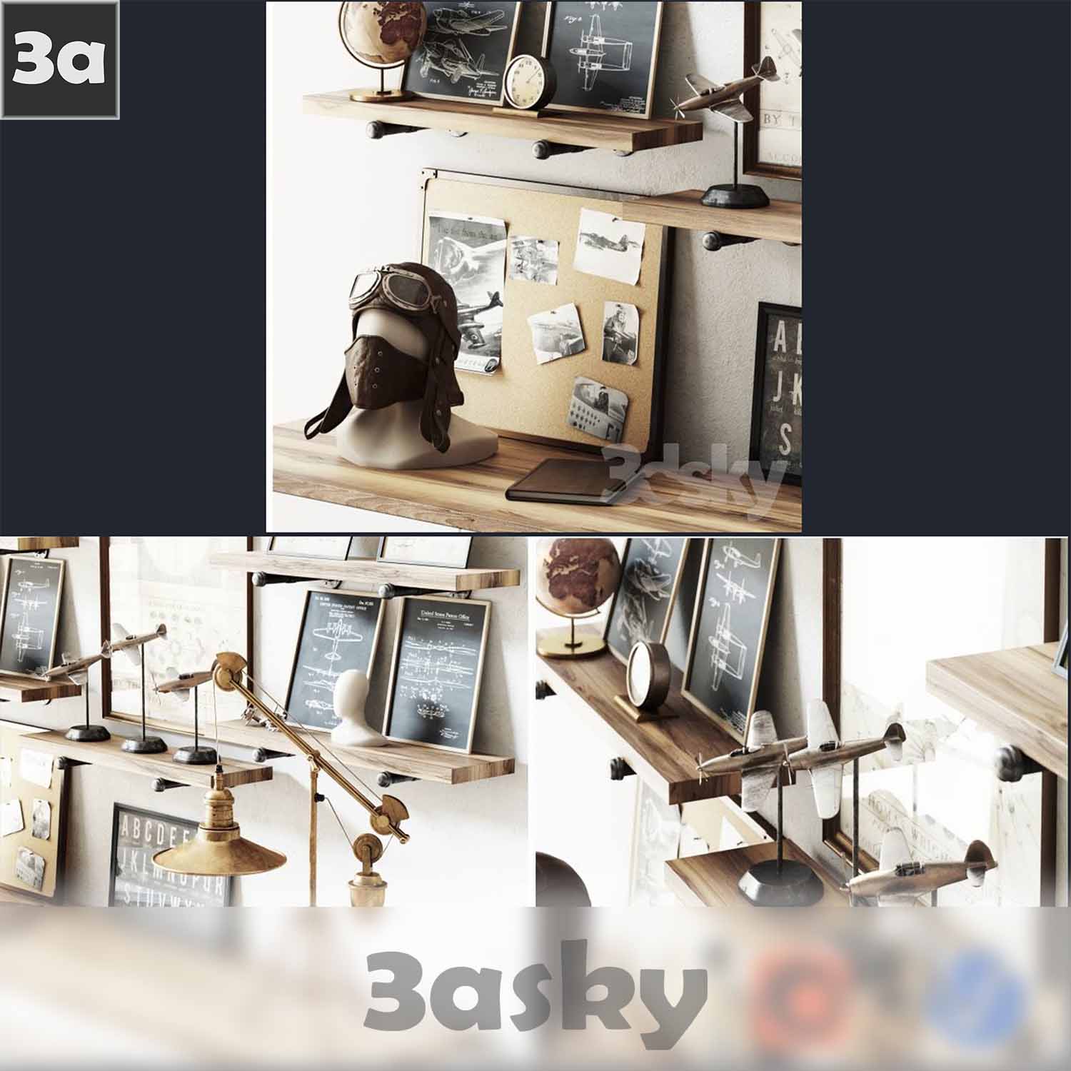 This 3DS MAX/DECORATION file showcases an Aviation themed decorative loft set. The set includes various aviation-inspired decorations suitable for a loft space. Perfect for adding a touch of aviation flair to your interior design projects.