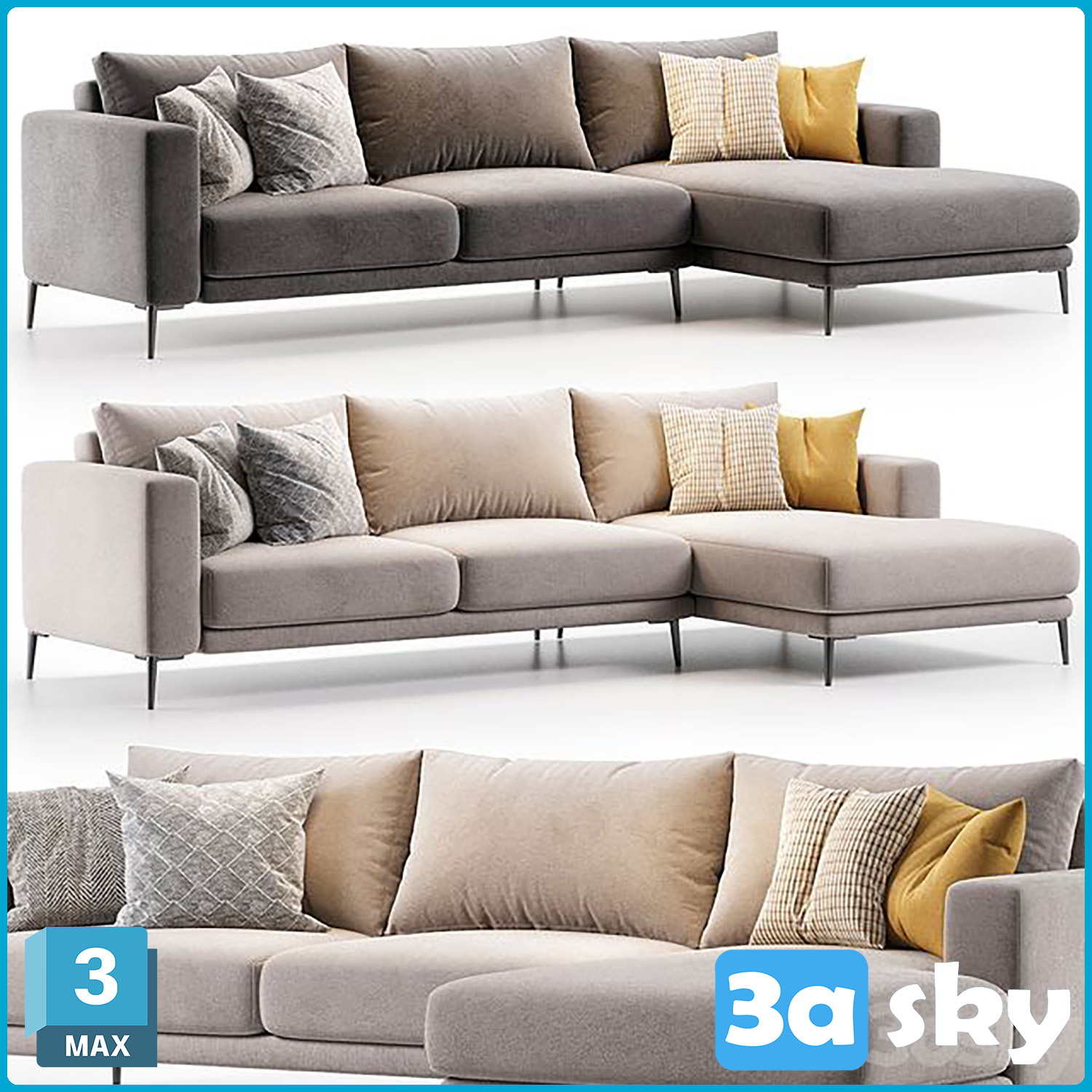 This 3D model showcases the Barlio Corner Sofa, a modern and comfortable furniture piece designed for interior spaces. Created using 3DS MAX software, this high-quality model is perfect for interior design projects, visualizations, and architectural renderings. The Barlio Corner Sofa features a sleek design with a focus on both style and comfort, making it an ideal choice for contemporary living spaces.