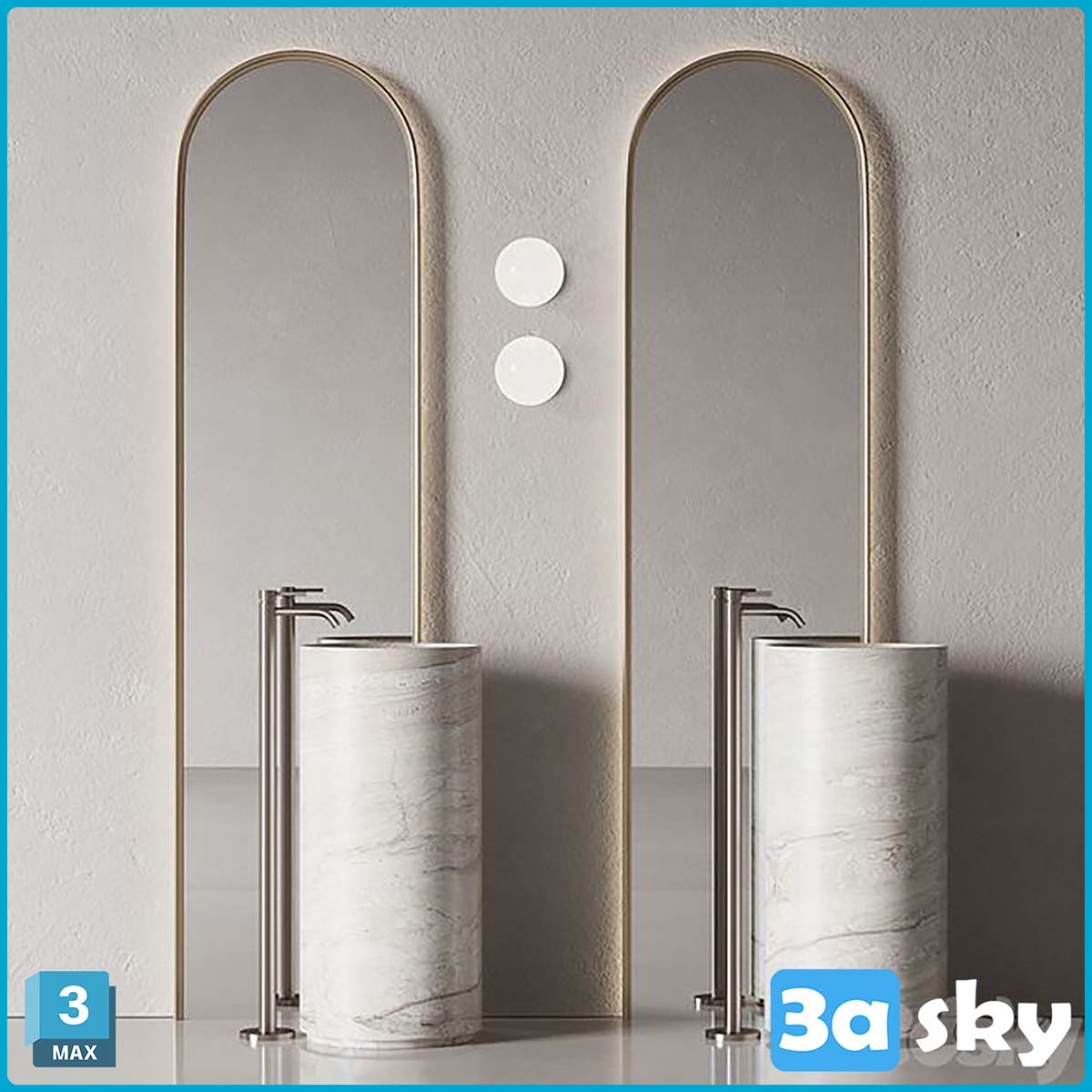 This 3D model showcases a modern bathroom and WC design created using 3DS MAX software. The design features contemporary fixtures and a well-planned layout. Explore the intricate details of the interior architecture in this preview image.