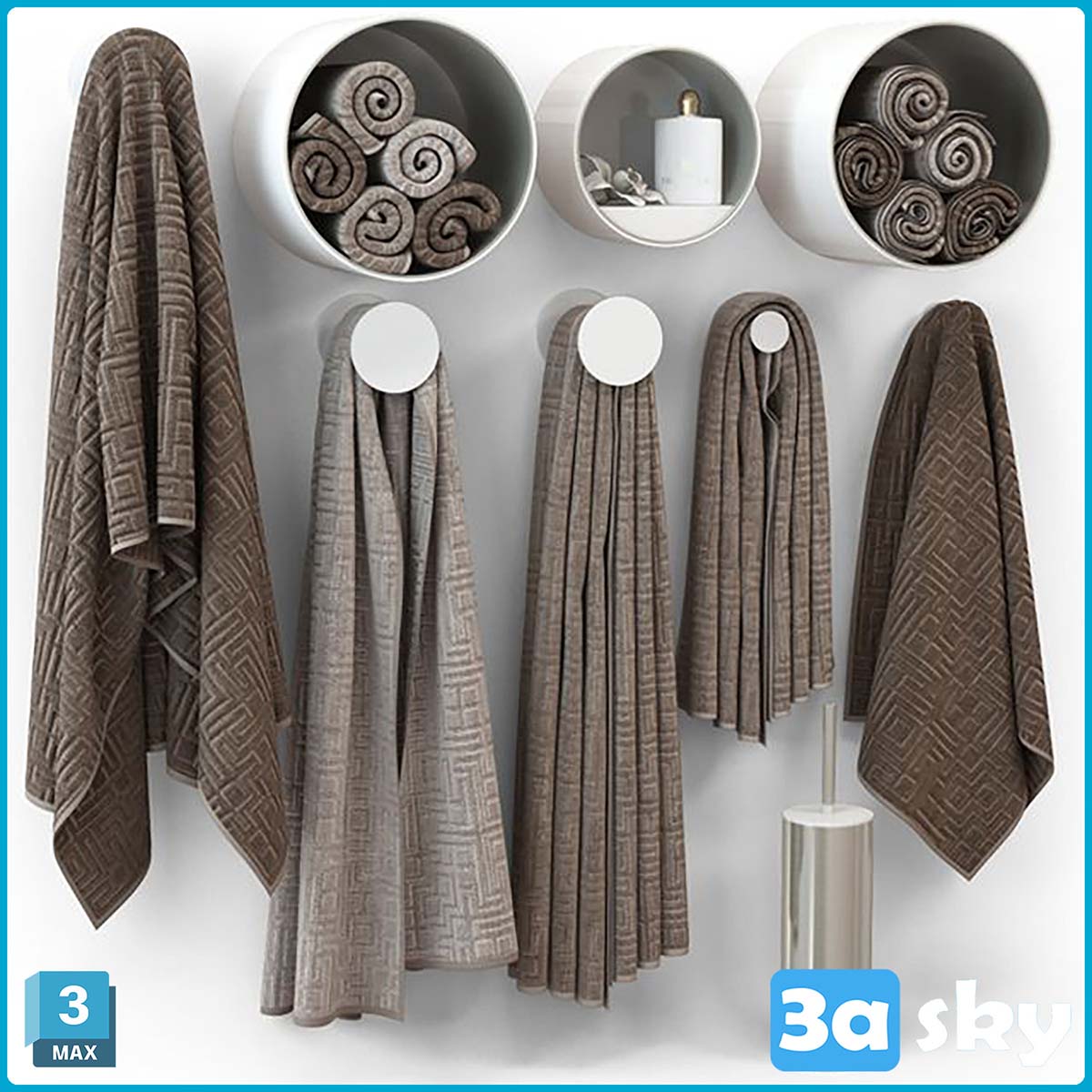 This 3D model showcases a bathroom and WC setting with a focus on towels. It is designed to provide a realistic representation for interior design projects. The intricate details and layout make it a valuable asset for visualizing and planning bathroom spaces.