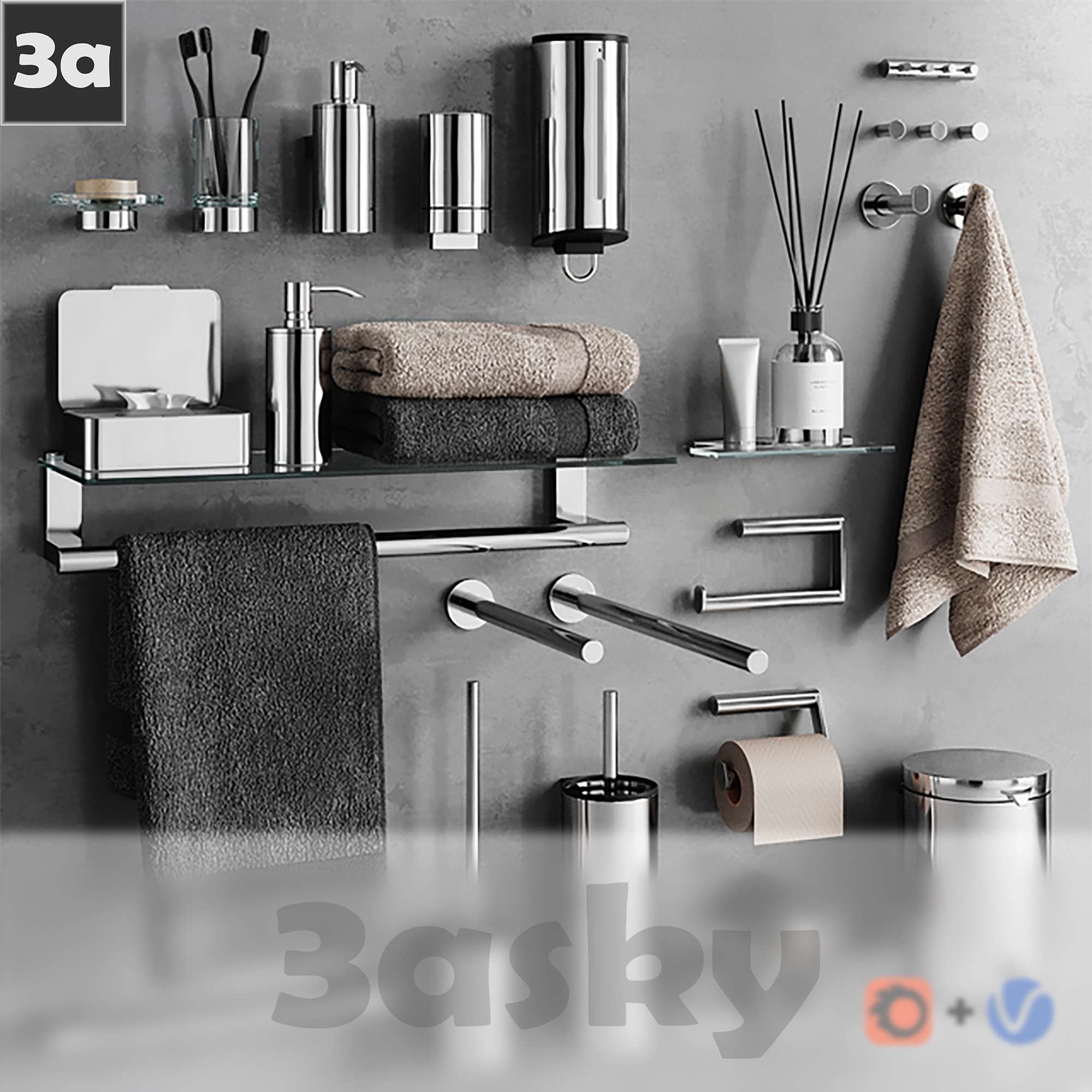 This 3D model showcases a modern bathroom and WC design created using 3DS MAX software. The design features contemporary fixtures and a well-planned layout. Explore the intricate details of this 3D model for inspiration and design ideas.