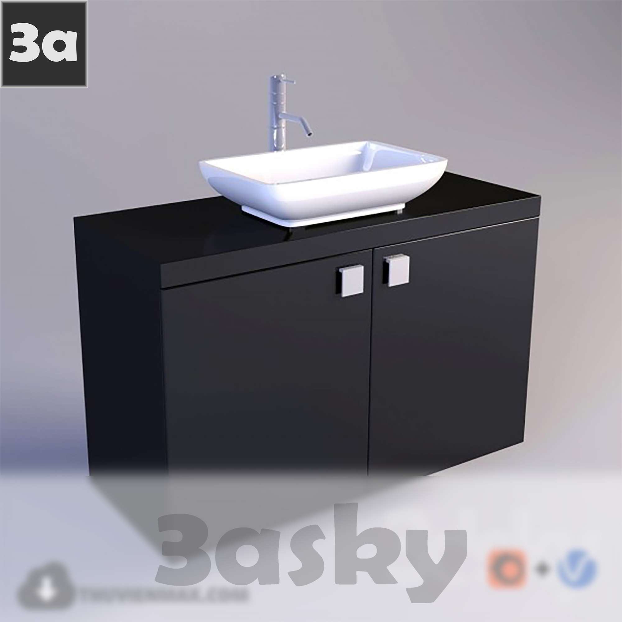 This 3D model showcases a modern bathroom and WC design, featuring a stylish sink and cabinet. Created using 3DS MAX software, this model is ideal for architectural visualization and interior design projects. The detailed rendering captures the essence of a contemporary bathroom setting, perfect for professionals and enthusiasts alike.