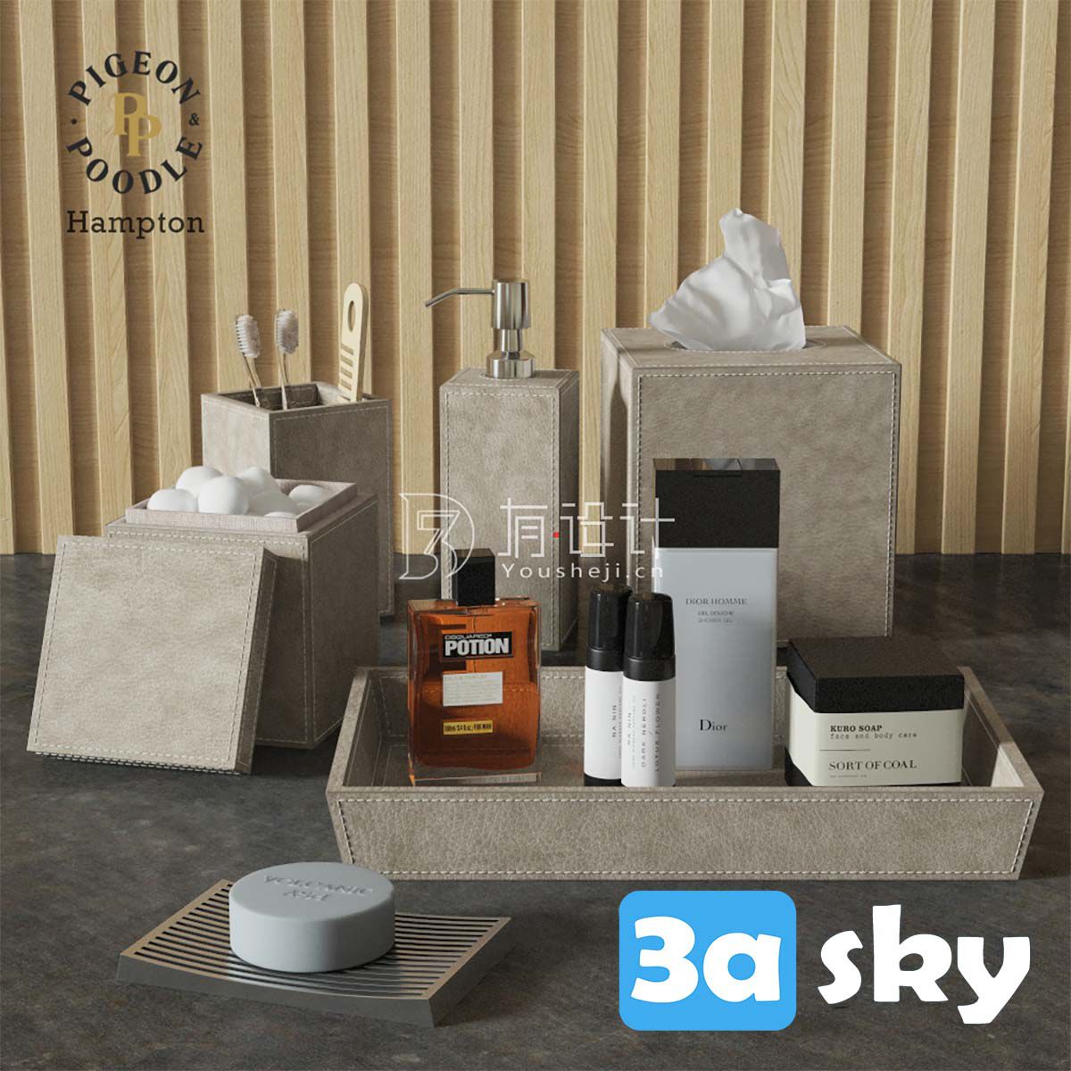 This 3D model showcases a beautifully designed bathroom and WC by Pigeon & Poodle HAMPTON. It is created with attention to detail, making it ideal for interior design visualization and projects. The model features modern elements and a stylish aesthetic, perfect for adding a touch of luxury to any virtual space.