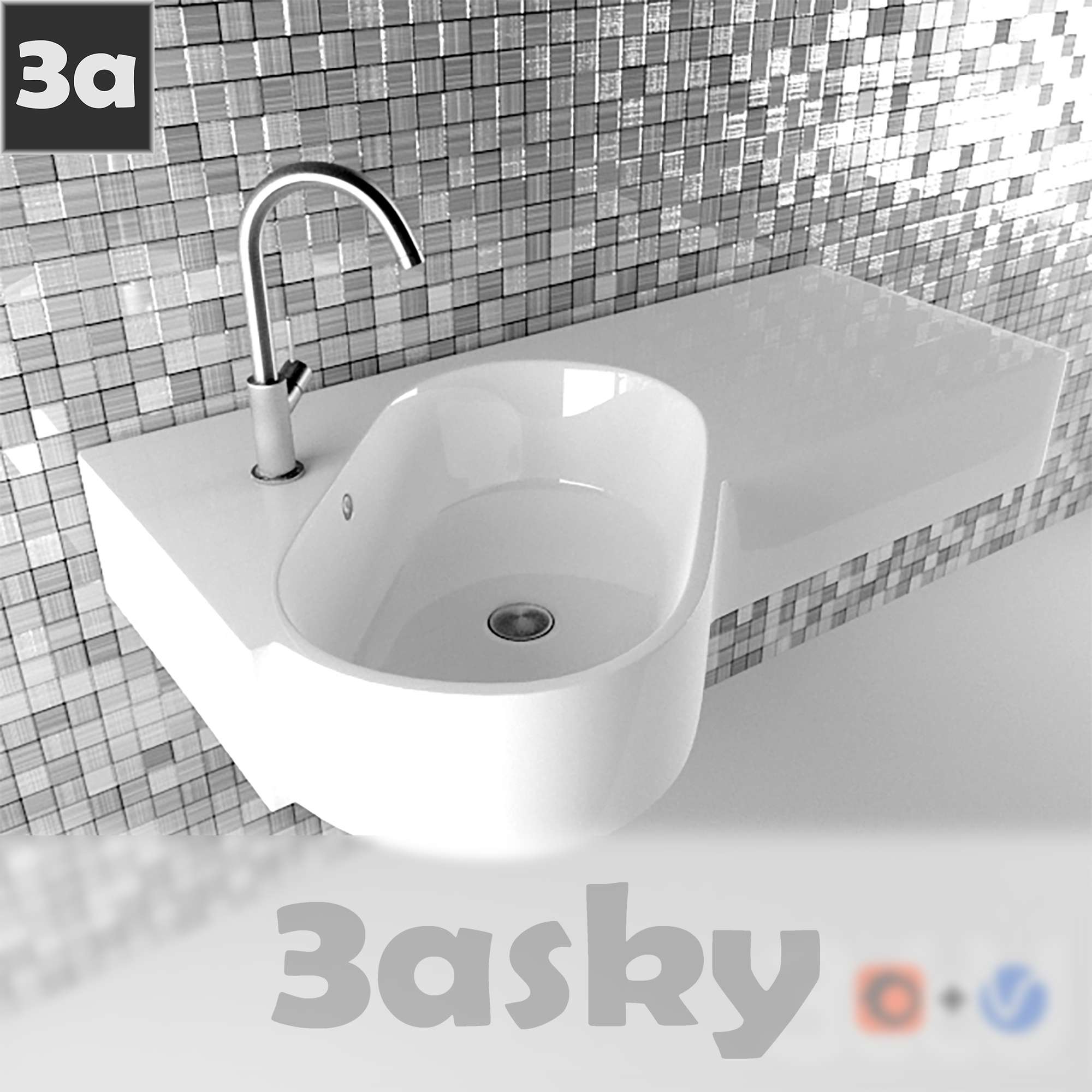 This 3D model showcases a bathroom and WC design created using 3DS MAX software. The design is based on the Hatria Area collection, featuring modern and stylish elements for a contemporary bathroom and WC setup.