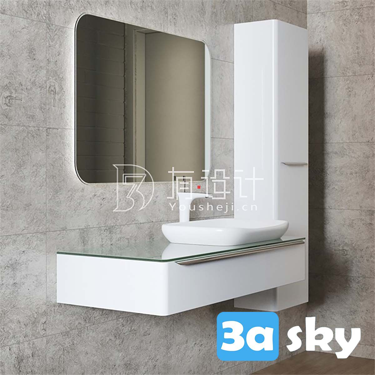 This 3D model showcases a modern bathroom and WC design featuring Keramag My Day products. The design includes sleek fixtures and a contemporary layout, providing a realistic view of a stylish interior space. Explore the details and layout of this 3D model for inspiration in interior design projects.