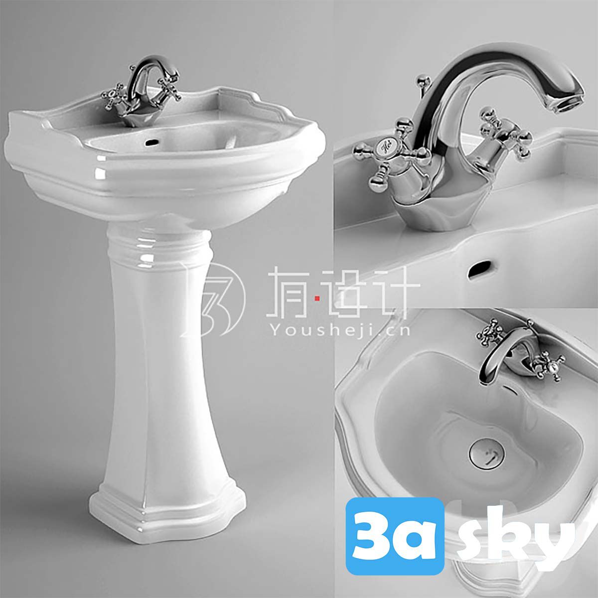 Bathroom and WC 3D Model - Kerasan Retro Sink 560x465 mm