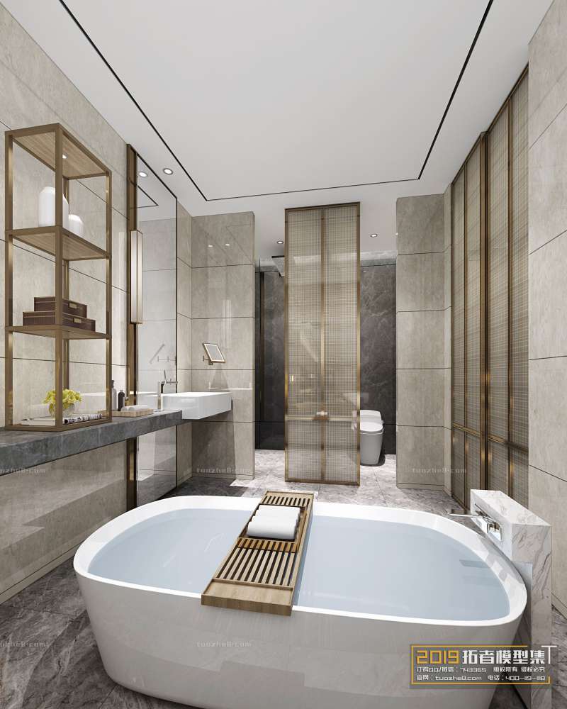 This 3D scene showcases a modern bathroom space with design elements such as sleek fixtures, contemporary decor, and a stylish layout. Experience the beauty of interior design in this visually appealing bathroom setting.