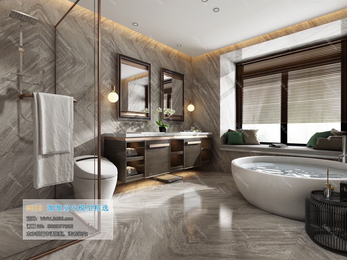 This 3D scene showcases a bathroom space designed in Chinese style. The interior features elements that reflect traditional Chinese design aesthetics, creating a unique and elegant ambiance. Explore the intricate details and layout of this space for inspiration in your own design projects.