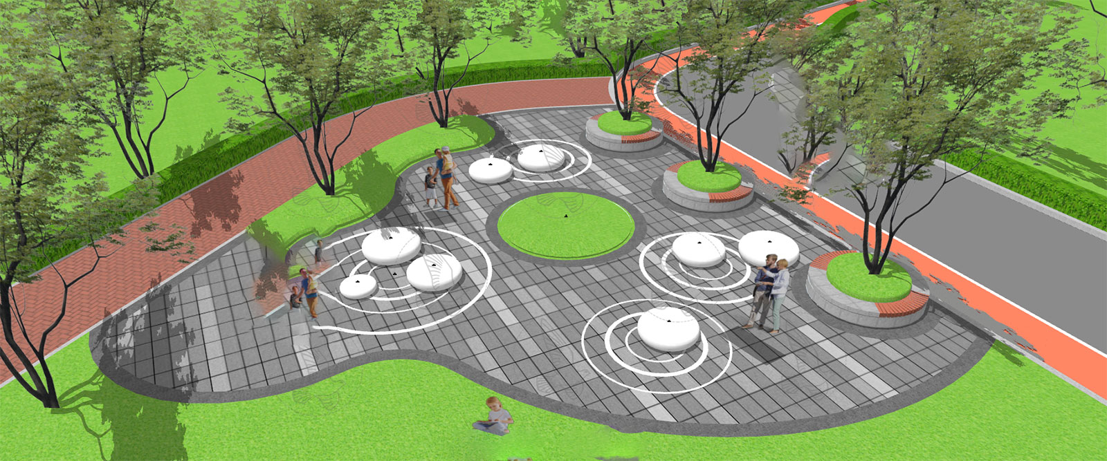 This 3D scene model showcases a beautiful park setting with lush greenery, trees, benches, and a winding pathway. Ideal for architectural visualization and outdoor design projects. Download this Sketchup file to enhance your design library.