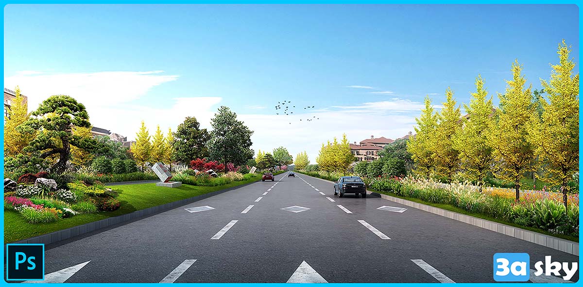 This image showcases a mesmerizing sunset landscape with a colorful sky, fluffy clouds, and the sun setting in the horizon. The vibrant hues and peaceful ambiance make it a perfect depiction of the beauty of nature.