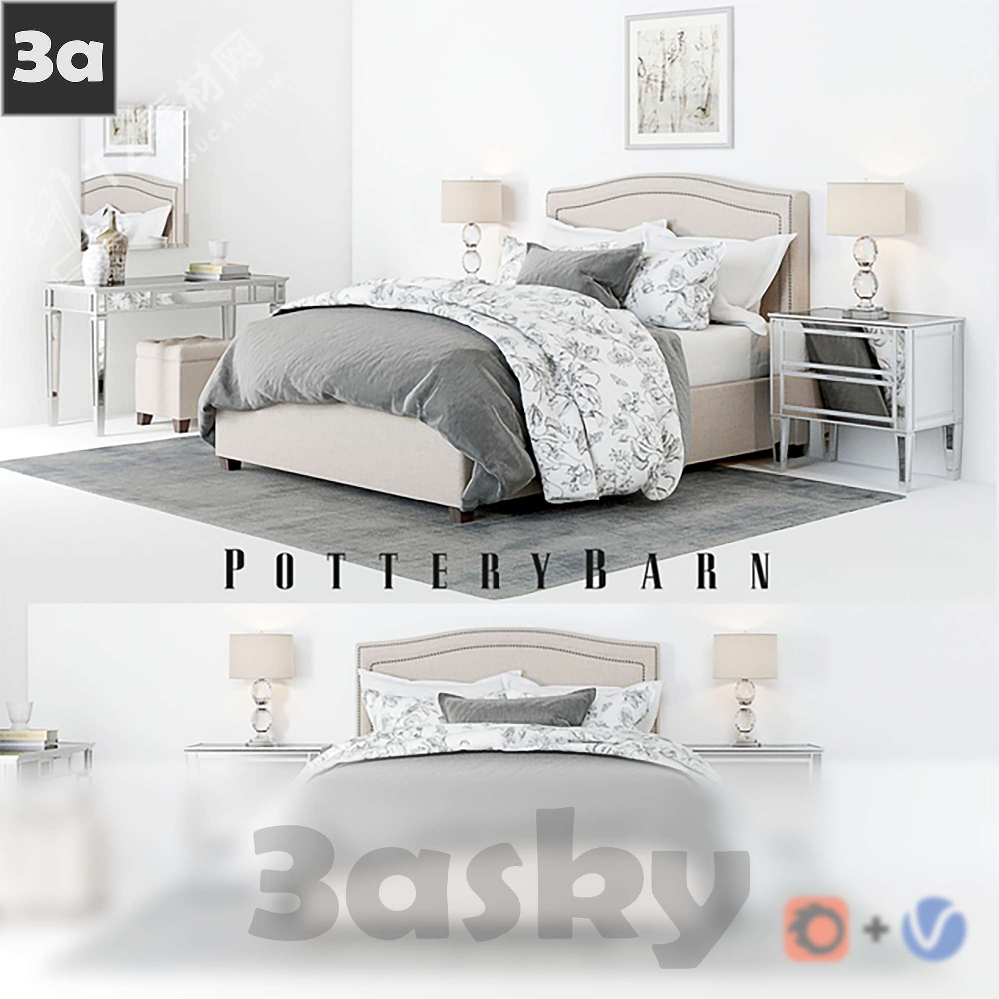 This 3D model features a high-quality bed design suitable for interior design projects. The file is compatible with 3DS MAX/FURNITURE software. Enhance your collection with this detailed furniture piece for bedroom and home decor visualization.