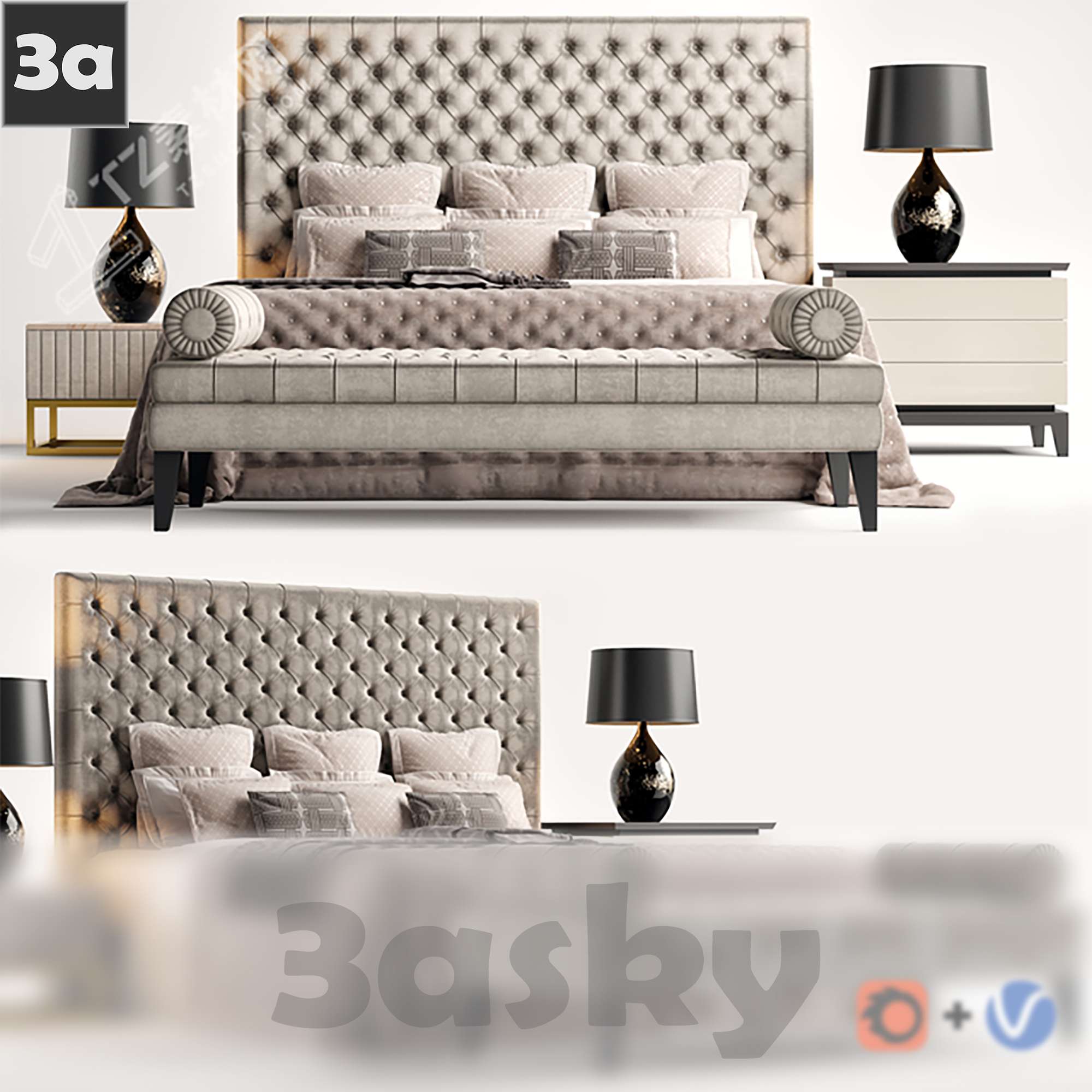 This 3D model file features a detailed preview of a bed, suitable for interior design projects. The file is in 3DS MAX format.