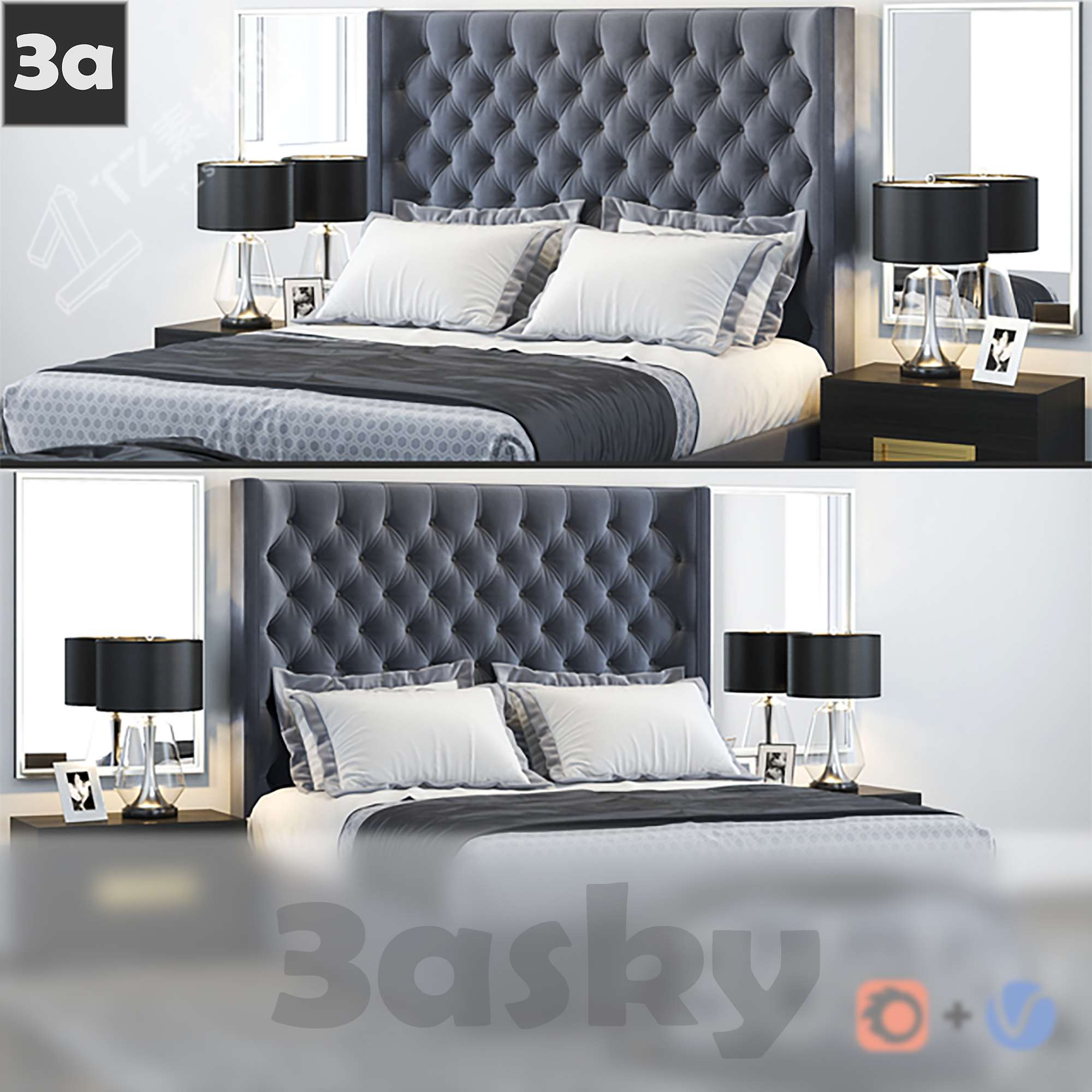 This 3D model showcases a detailed preview of Bed 1844074, suitable for interior design and architectural visualization projects. The model is created in 3DS MAX format and offers a realistic representation of a modern bed design. Enhance your design projects with this high-quality furniture model.