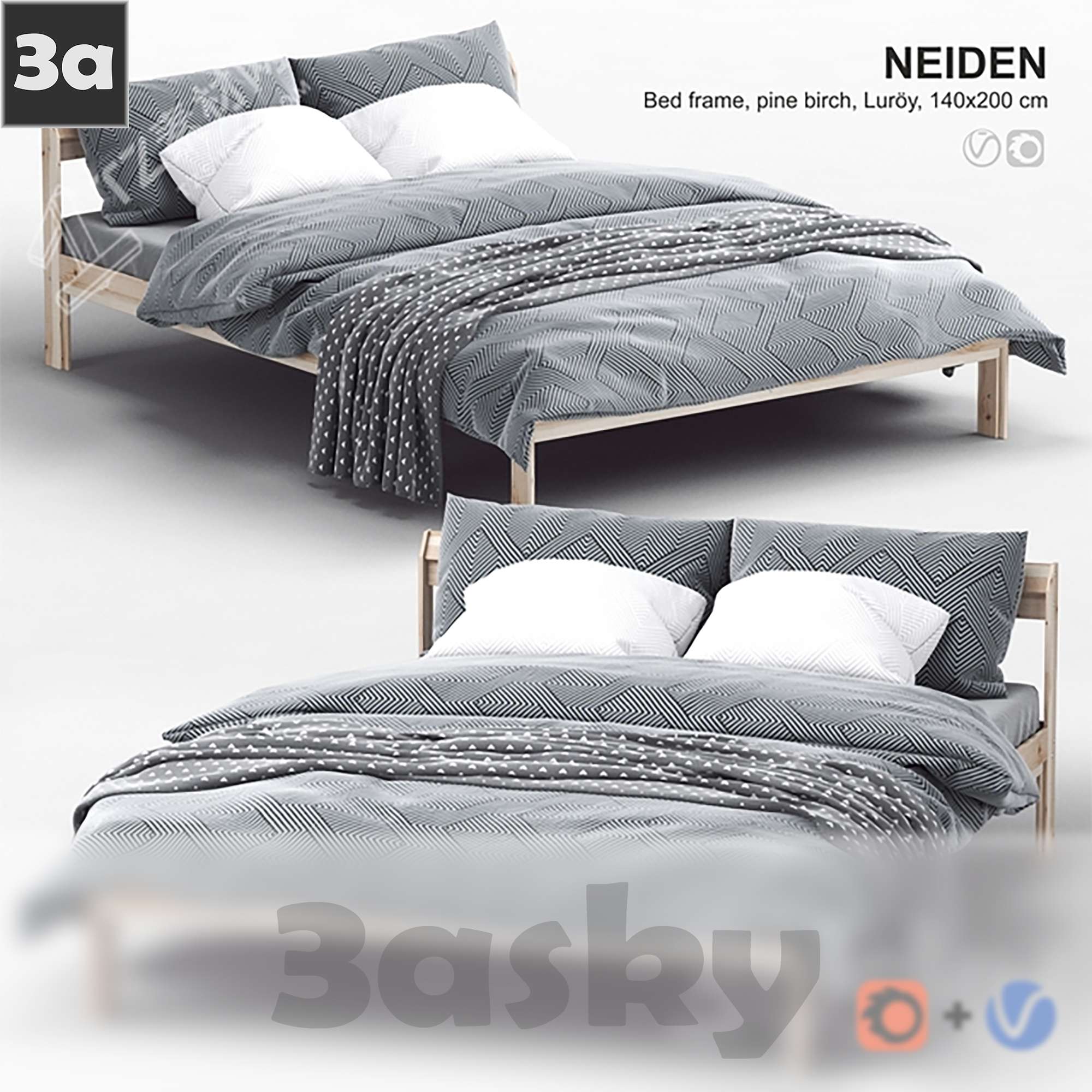 This 3D model showcases a modern bed design, perfect for contemporary interior settings. The sleek and stylish design adds a touch of elegance to any room. Explore the intricate details and craftsmanship of this furniture piece in the preview image.