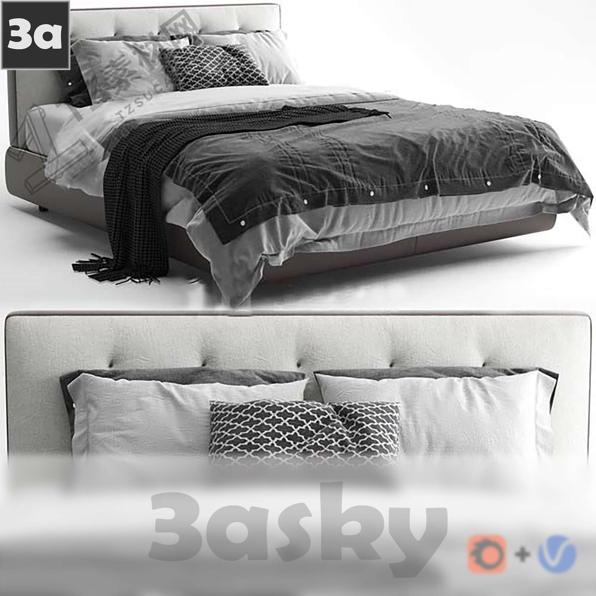 This 3D model showcases a detailed bed design with code 2584854. It is suitable for interior design projects and provides a realistic representation of a bed for visualization purposes.
