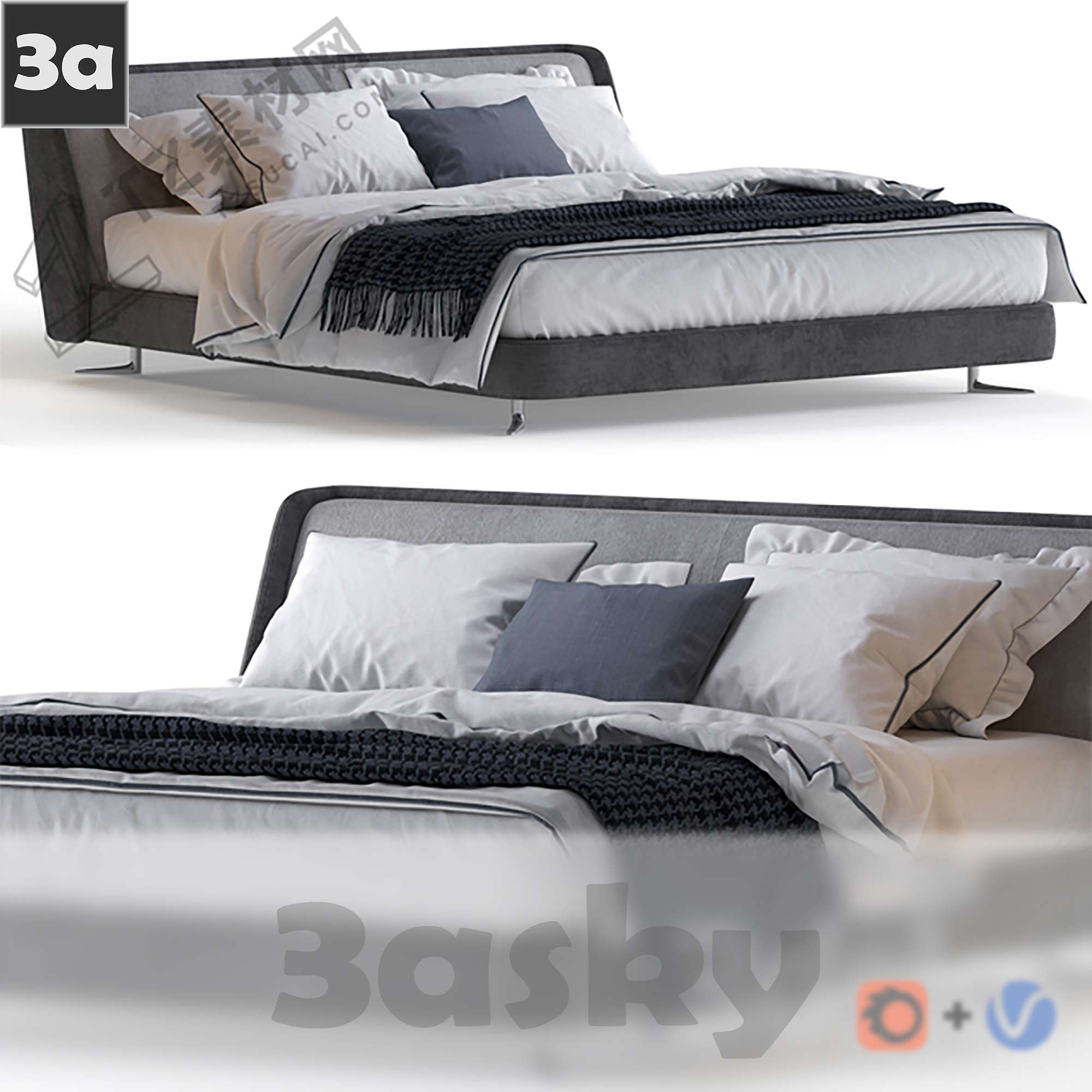 This 3D model showcases a detailed bed design, suitable for interior design projects. The file is compatible with 3DS MAX software and can be used for various design purposes. Download now to enhance your design projects.
