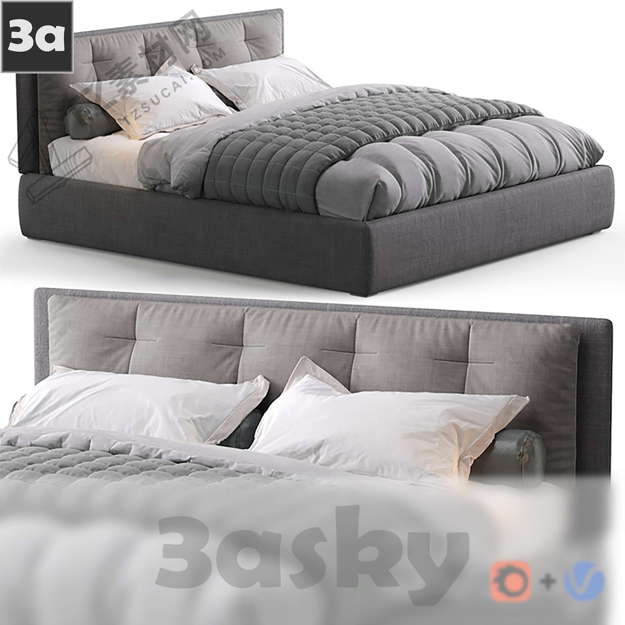 This 3D model file features a preview of Bed 2630384, a modern and stylish bed design suitable for bedroom interior design projects. The file is created in 3DS MAX software and provides a detailed representation of the furniture piece. Explore this high-quality 3D furniture model for your design inspiration and visualization needs.