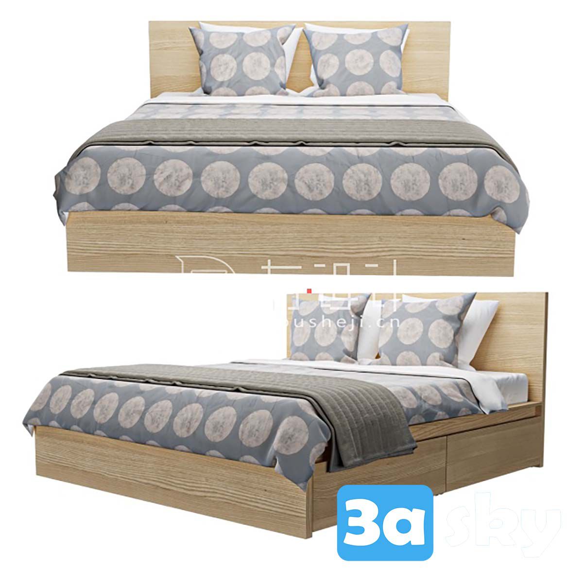 Bed Malm IKEA 3D Model