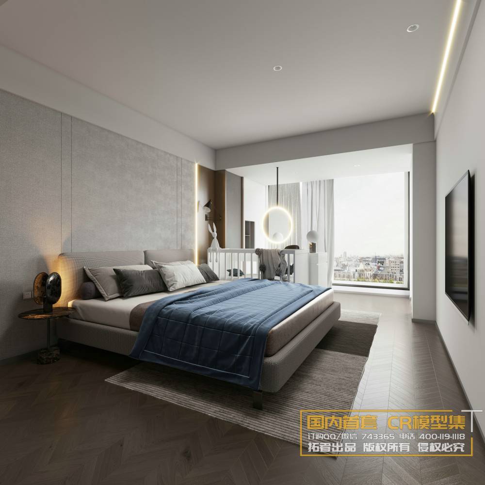 This 3D scene features a beautifully designed modern bedroom created in 3DS MAX. The high quality render highlights the intricate details of the interior design, providing a realistic view of the space. Perfect for architectural visualization and interior design inspiration.