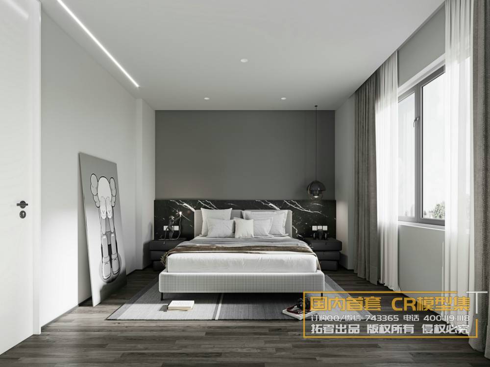 This 3D scene features a modern bedroom interior design created in 3DS MAX. The high quality render highlights the attention to detail and the aesthetic appeal of the room. Explore the intricate elements and design choices in this captivating 3D visualization.