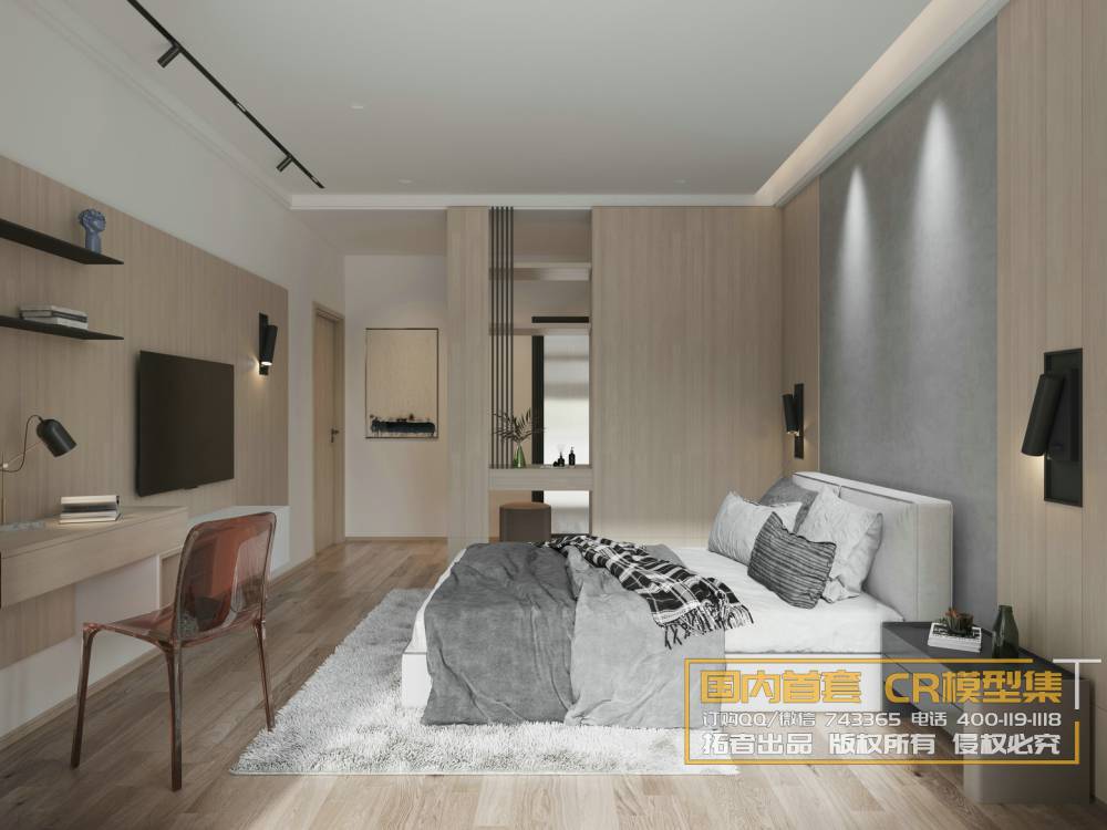 This 3D scene showcases a beautifully designed bedroom interior. The scene includes detailed furniture, decor elements, and lighting setup. Created with 3DS MAX, this high-quality 3D model is perfect for interior design projects and visualization purposes.