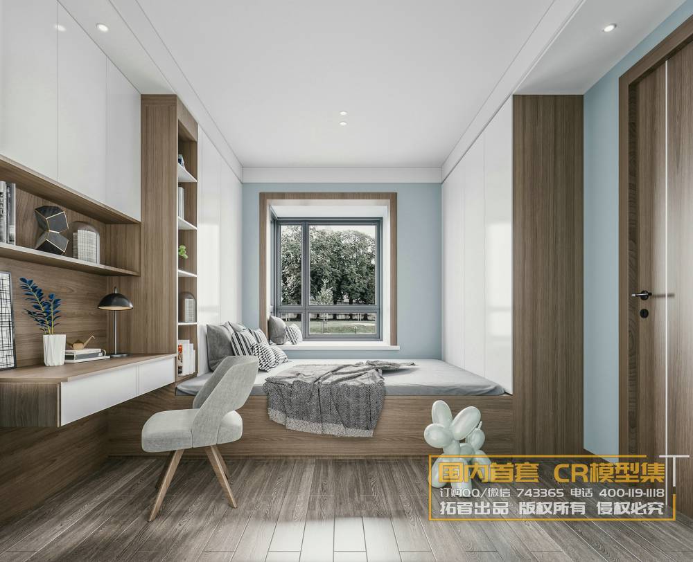 This 3D scene preview showcases a bedroom design created in 3DS MAX. The image provides a sneak peek into the detailed interior layout, furniture arrangement, and decor elements. Explore the artistry and creativity behind this stunning bedroom visualization.