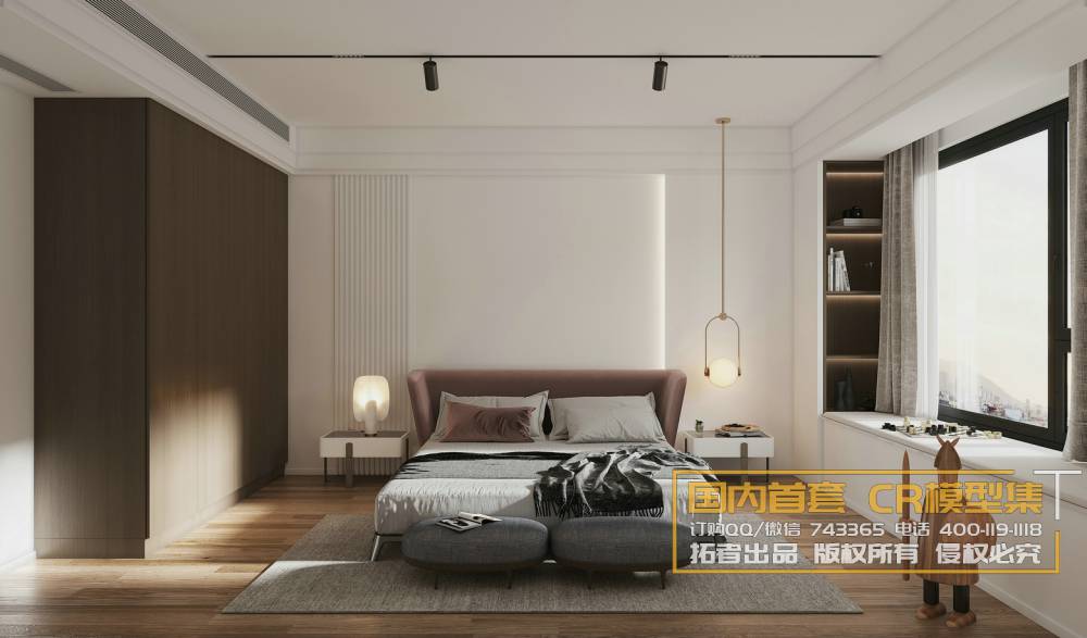 This image showcases a preview of a meticulously crafted bedroom 3D scene. The design features modern furniture and a stylish interior layout. Perfect for those looking for inspiration in interior design projects. This file is part of the 3DS MAX/3D SCENES collection.