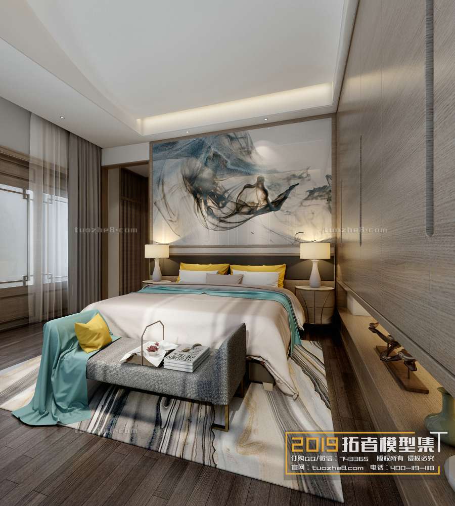This 3D scene showcases a bedroom designed in a Chinese style, featuring intricate details and elegant furniture. Explore the blend of traditional Chinese elements with modern design in Bedroom Chinese Style 067.