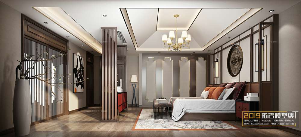 This 3D scene showcases a bedroom designed in a Chinese style. The room features traditional Chinese furniture and decor, creating a serene and elegant atmosphere. Explore the intricate details of this bedroom design and get inspired for your own interior design projects.